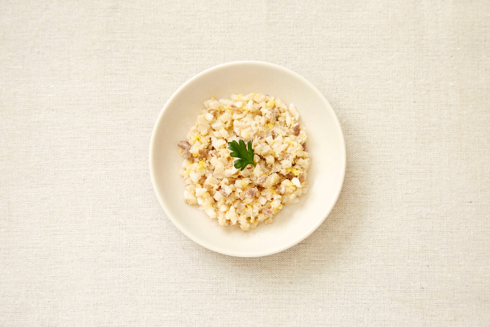 スケソウダラ、かぶ、じゃがいも、大根、豚レバー、白米ごはん、豚はつ、緑豆半割、レンコン、全卵、大豆油、米ぬか、亜麻仁油、米粉